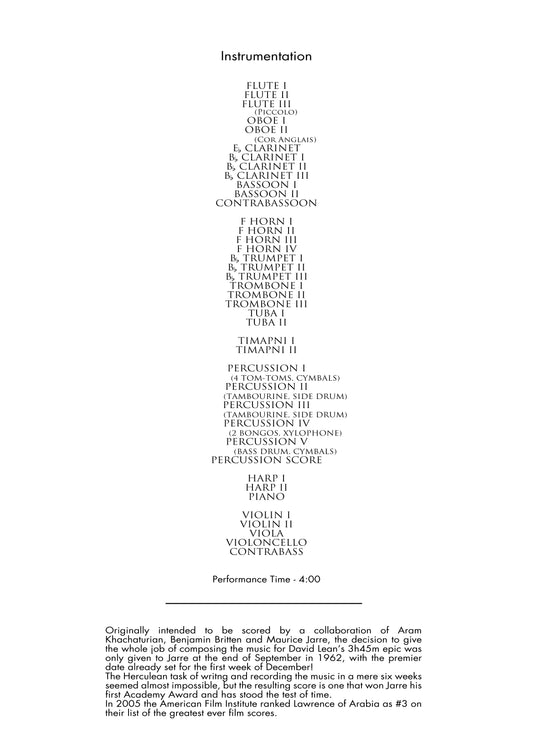 OVERTURE from LAWRENCE OF ARABIA - Maurice Jarre **PRINTED SCORE**