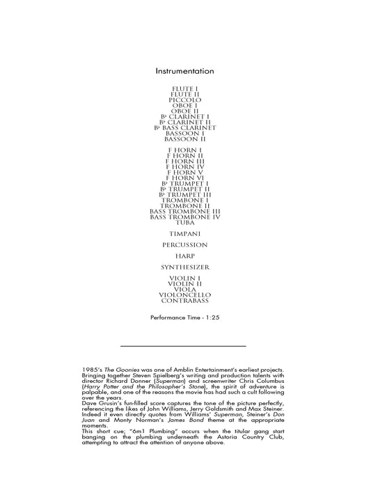 PLUMBING from The Goonies - Dave Grusin (Score Only) **DIGITAL DOWNLOAD**