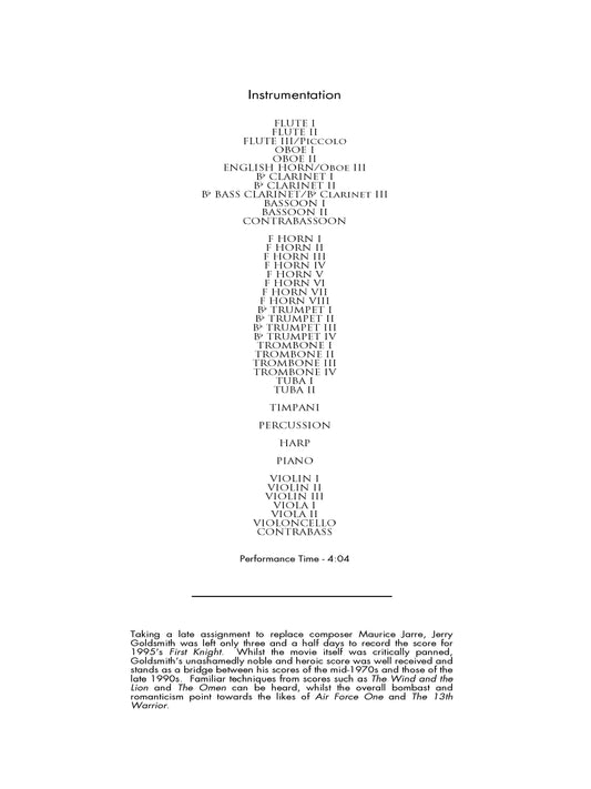 MAIN TITLES/END CREDITS from First Knight - Jerry Goldsmith (Score Only) **DIGITAL DOWNLOAD**