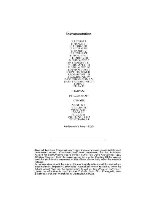 ROME from Gladiator - Hans Zimmer (Score Only) **DIGITAL DOWNLOAD**