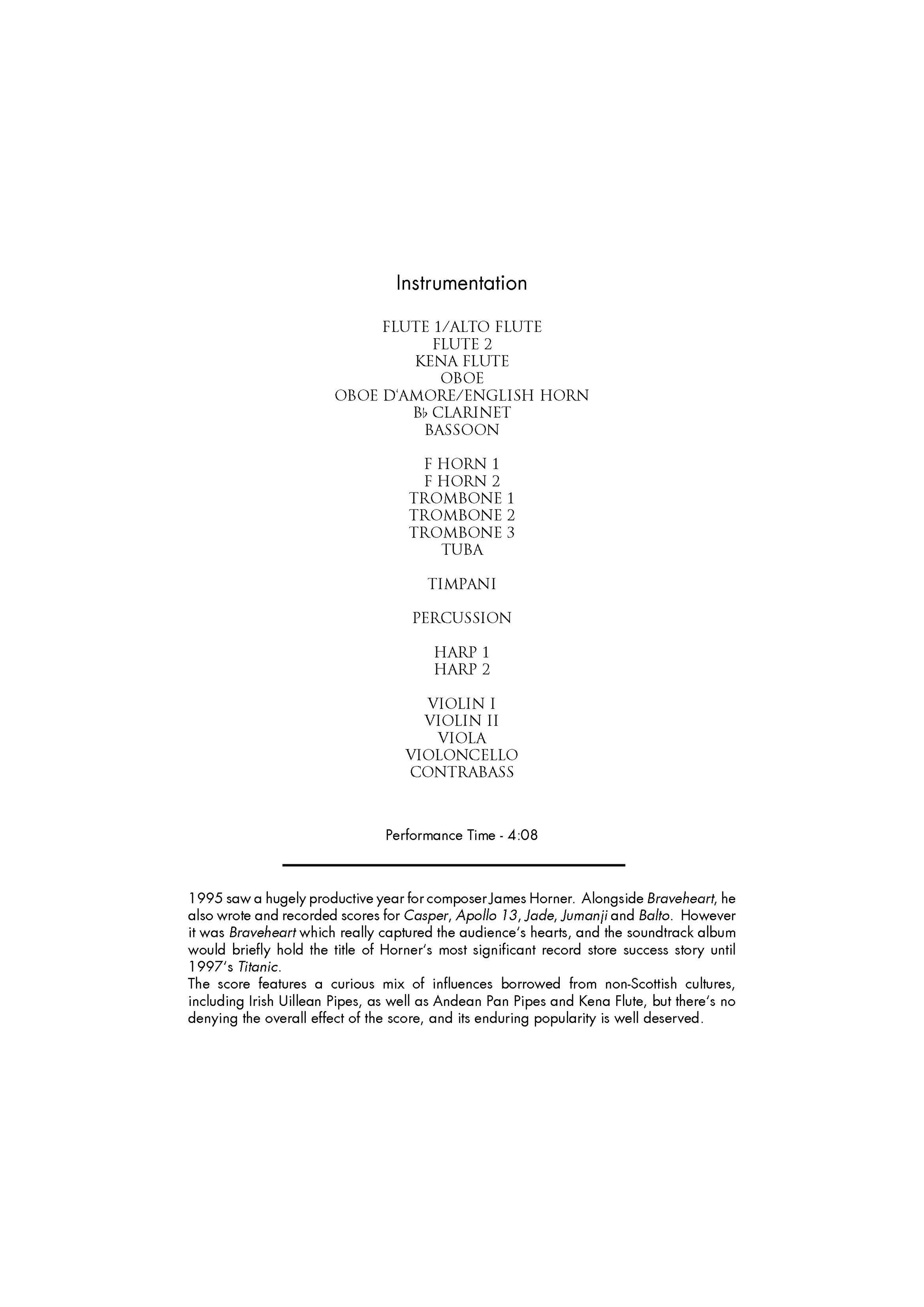 BRAVEHEART THEME (FOR THE LOVE OF A PRINCESS) from Braveheart - James Horner (Score & Parts) **DIGITAL DOWNLOAD**