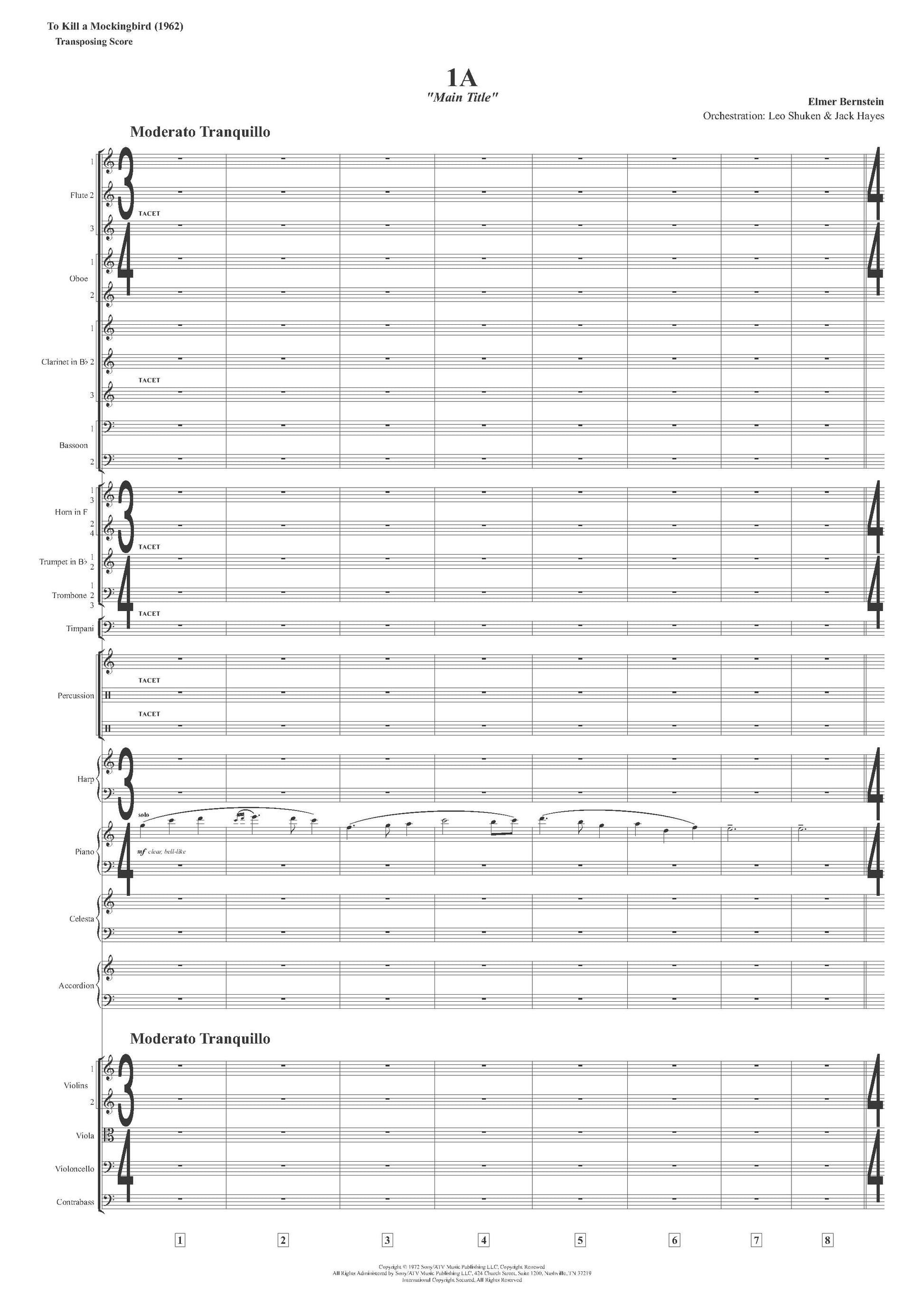 PURCHASE/DOWNLOAD HERE ---> To Kill A Mockingbird - Main Title - Score Only by Elmer Bernstein - Full Orchestra - Digital Sheet Music | Sheet Music Plus