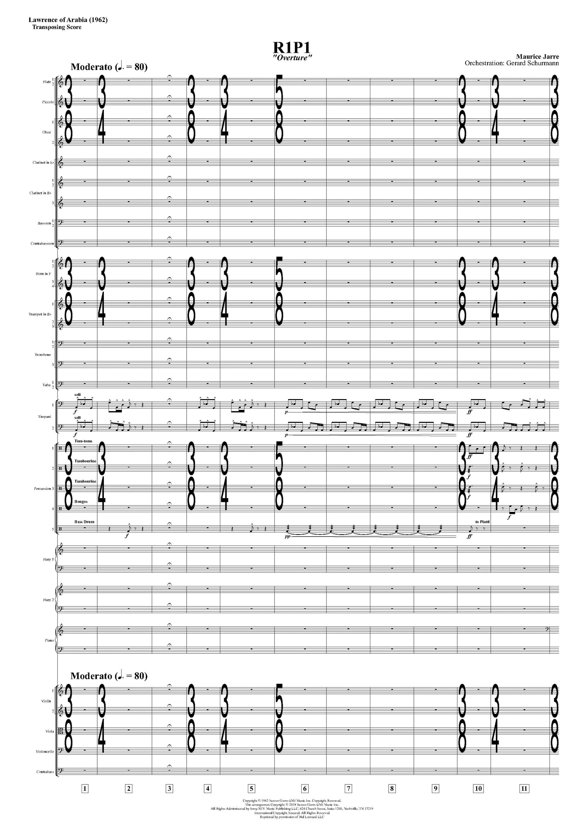 OVERTURE from LAWRENCE OF ARABIA - Maurice Jarre **PRINTED SCORE**