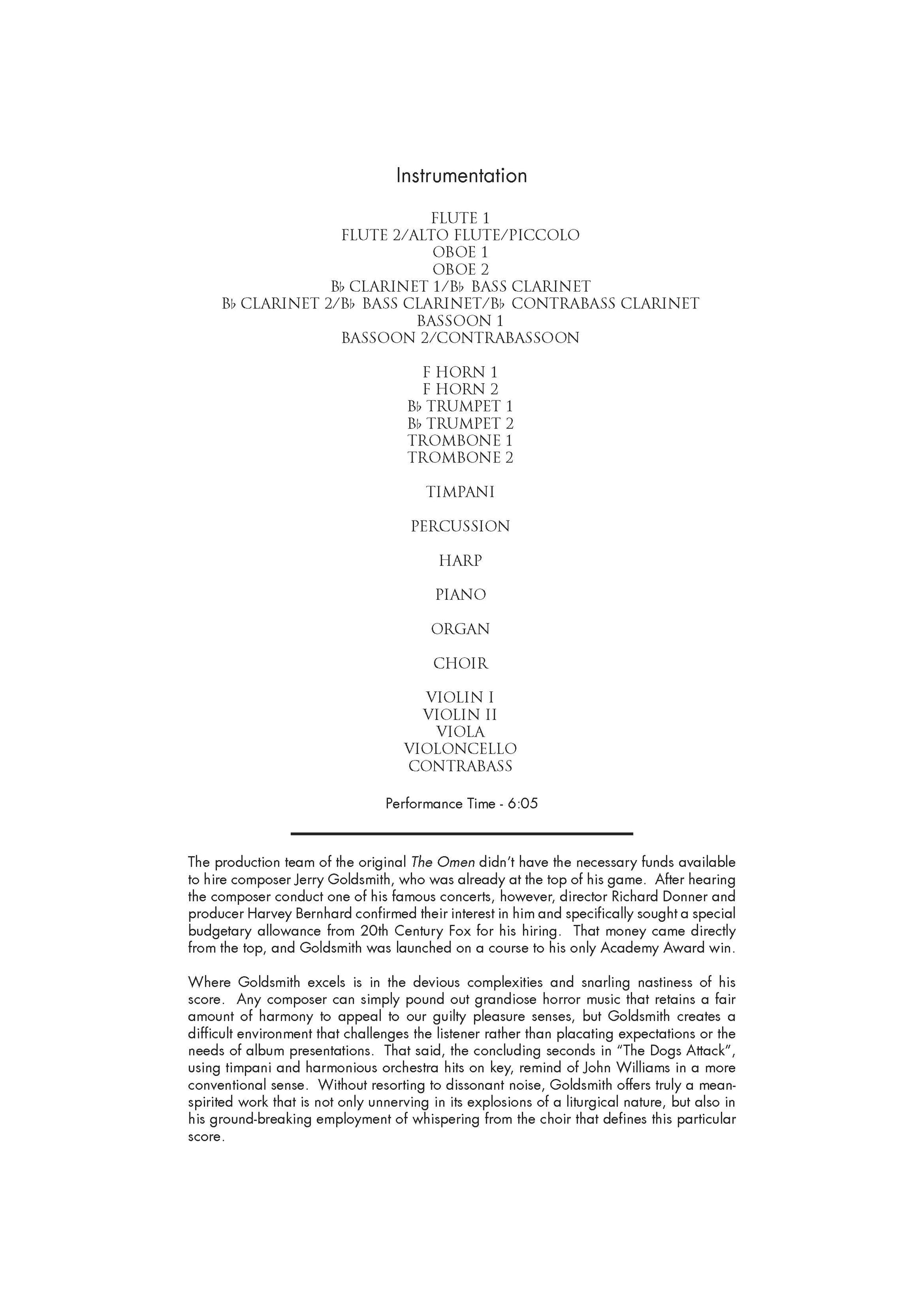 THE DOGS ATTACK - The Omen - Jerry Goldsmith (Score Only) **DIGITAL DOWNLOAD**